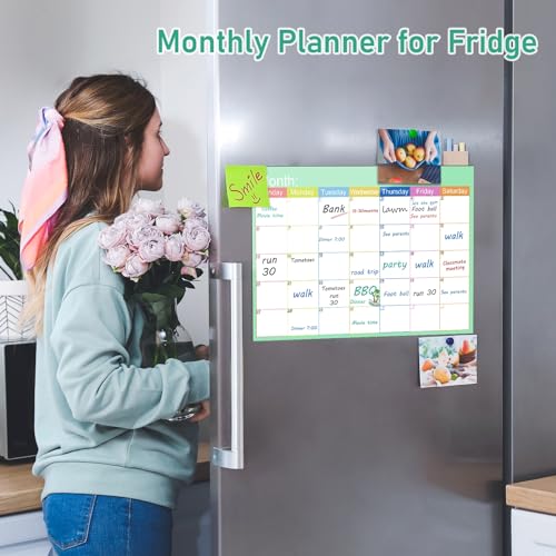 - 📅【STRONG MAGNETISM】Our kitchen whiteboard monthly planner to use environmentally-friendly and complete magnets, which have strong magnetism, are stronger, and are not easy to slide or fall off.(Tip: Once you receive your monthly planner, roll it up in the opposite direction to stick it more securely on the fridge.)