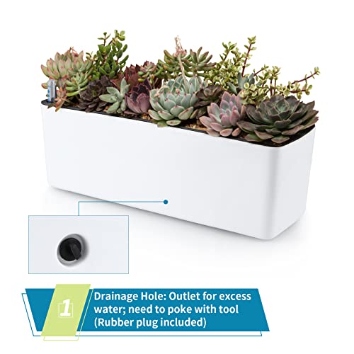 - DRAINAGE SYSTEM: Excess water flow out from drainage hole, which prevent drowning plants (Drainage hole needs to poke with tool and rubber plug included)