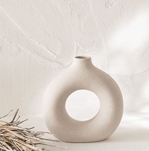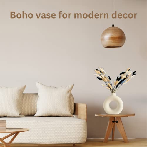 - Pampas Vase: this small white ceramic vase is perfect as pampas grass vase, modern vase, its made of 100% ceramic, with matte finish. Size: 15cm*14cm*4cm/5.5inches*5.1inches*1.5inches Shape: Donut/doughnut