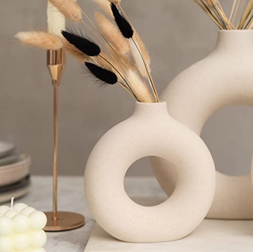 - Aesthetic Room Decor: The mini ceramic donut vase is your ideal vase for pampas grass, vases for flowers, bunny tails, dried flower, bubble candle, stems, bouquets; you can either use alone, or with other white vase bum vase, to create beautiful space in your home.