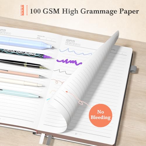 - [100GSM High Quality Paper]The A5 journals is made of 100gsm high grammage paper, which is 20% thicker than ordinary paper. The paper is smooth and writes smoothly without ink penetration, suitable for most fountain pens. 180° easy to lay flat for more comfortable reading and writing