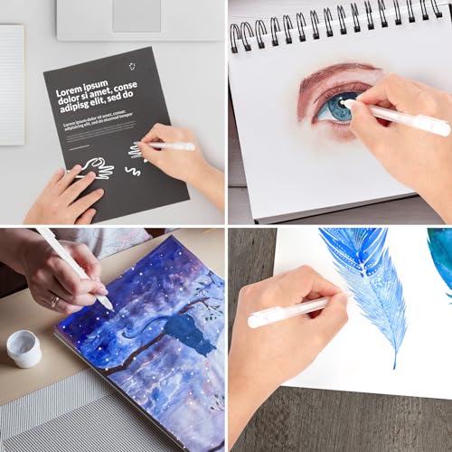 - 【WIDE APPLICATION】These pens are ideal for artists and hobbyists engaged in sketching, oil painting, watercolor painting, needle strokes, handwriting, graffiti, illustrations, and various handcrafting projects. Their ability to produce crisp, opaque white lines on dark papers such as black, brown, and kraft expands their utility across multiple artistic and decorative endeavors.