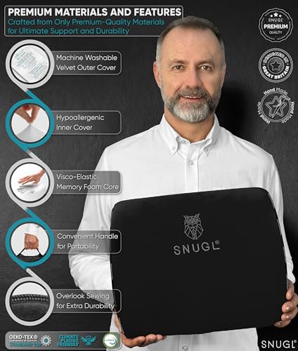 - [ STAY UPRIGHT, STAY COMFORTABLE ] – Sitting for long hours can take a toll on your back, but this memory foam pillow acts as a reliable posture corrector by keeping your spine in a healthy position. Ideal for office chairs, it helps reduce discomfort and fatigue while encouraging natural alignment—it’s the kind of support posture corrector women and men trust! For enhanced stability and all-day relief, combine it with the SNUGL back support belt for the ultimate back care combo.