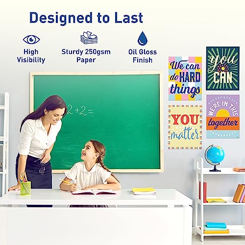 - VIBRANT & DURABLE DECOR — Crafted from sturdy 250gsm paper with an oil gloss finish, these classroom signs have colors that won't fade, ensuring a bright and engaging space. These welcome decorations for office, work and school motivation infuse your space with an atmosphere of purpose and drive for teachers, students and professionals