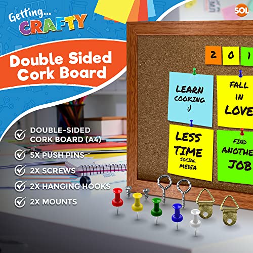 - Get Organised – Achieve all your goals by using our double sided small cork board (A4) to plan your days, weeks & more. Pin notices, notes, pictures, and more. Perfect to prop up on your desk or attach to the wall or fridge.