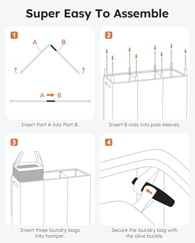 - 【Easy to Install and Foldable】This clothes hampers for laundry with detailed installation instructions, just insert 8 support rods into the fixed tube, you can complete the collapsible laundry basket installation in 1 minute, which is simple and convenient. In addition, it can be folded up and stored in a cabinet when idle, reducing the space occupation.