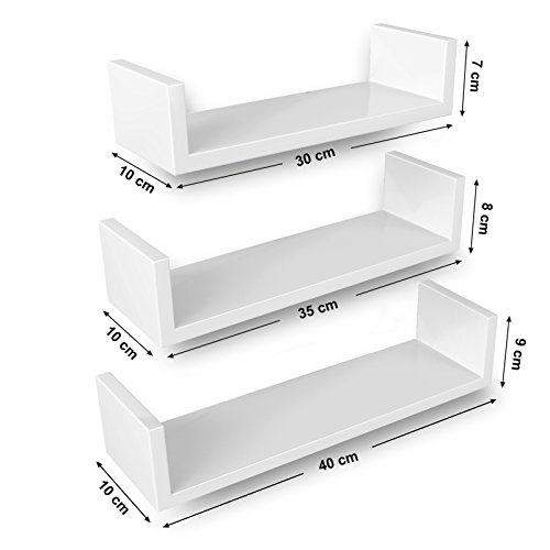 - [What You Get] A set of 3 wall shelves with a unique U-shape that does not take up floor space; instead, they create extra space in your living room, office, bathroom, or kitchen