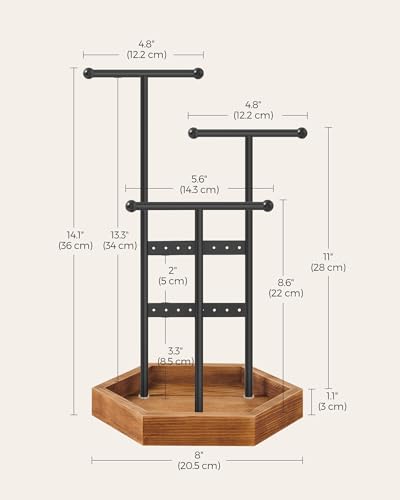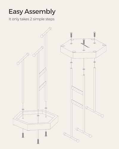 - [Robust & Stable] The hexagonal base ensures stability. The 3 metal rods are arranged in a triangle and can be attached to the base with screws, which increases stability and prevents the jewellery holder from tipping over