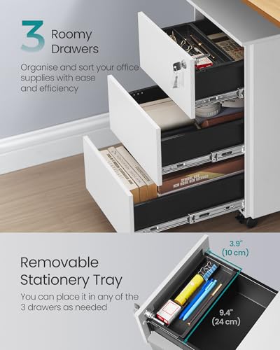 - Everything in One Place: If your desk at home or in the office is always messy, this mobile file cabinet with 3 drawers and an additional tray helps you organise your essentials with ease