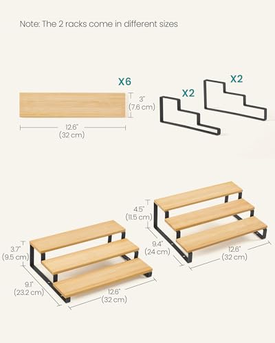 - 【VERSATILE】This 3-tier spice shelf is perfect for home use or store displays. Use it on countertops, dining tables, vanities, or in cupboards for showcasing condiments, desserts, perfumes, cosmetics, or collectibles