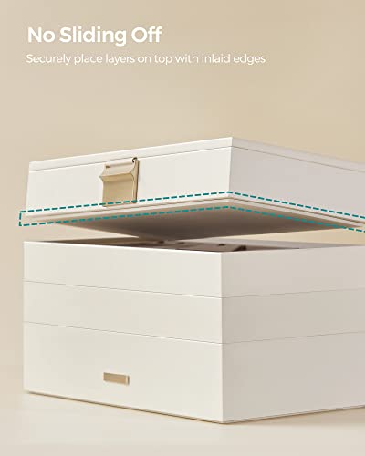 - [Helpful Additions] With grooves on the bottom of the removable jewellery trays, you can easily and securely place them on top of one another to save space. The dustproof transparent lid allows you to quickly find your jewellery at just a glance