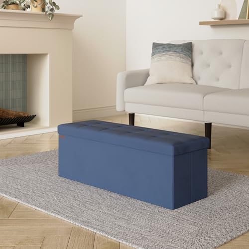- 【BUILT TO ENDURE】Crafted from robust MDF panels and boosted with metal corner guards on the lid, this footstool can easily hold up to 300 kg, offering a lasting seating or storage solution