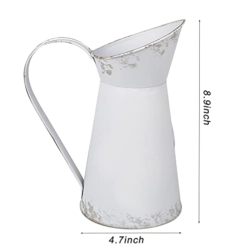 - Perfect Size: The height measures 20cm, bottom diameter 10.5cm. Package includes a white metal vintage milk jug vase. This is a small size, will be a perfect decoration for your table.