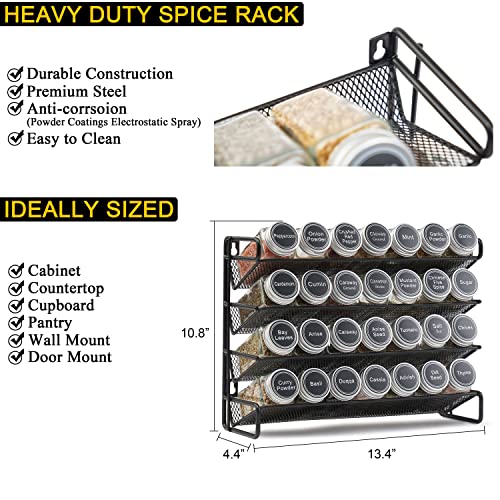 - 4 Tier Spice Rack – Made of strong steel and powder coatings electrostatic spray finished; Inclined design make it easy to locate and quickly grab what you need, turn any mess of spice into an organized masterpiece