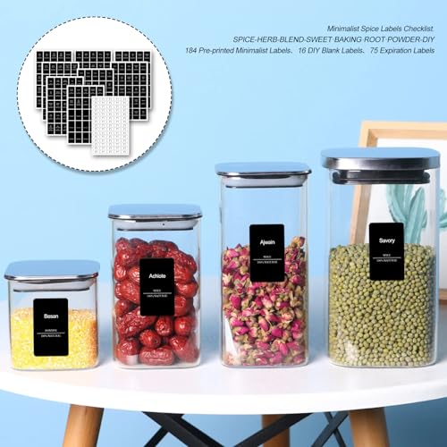 - 💙【What You Get】You will get 275pcs spice jar labels pre printed, including 148pcs common spice names + 16pcs blank pantry labels + 75pcs expiry date labels. The quantity is sufficient for your daily needs. (Not: Jars not included)