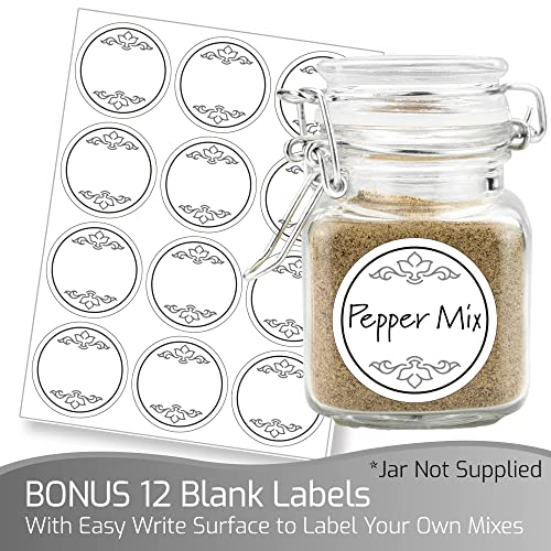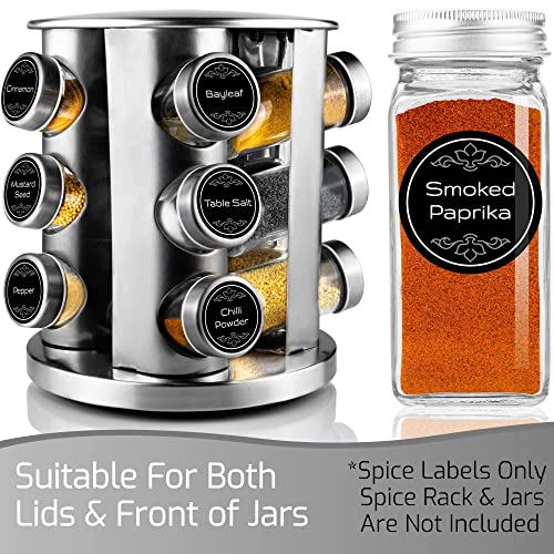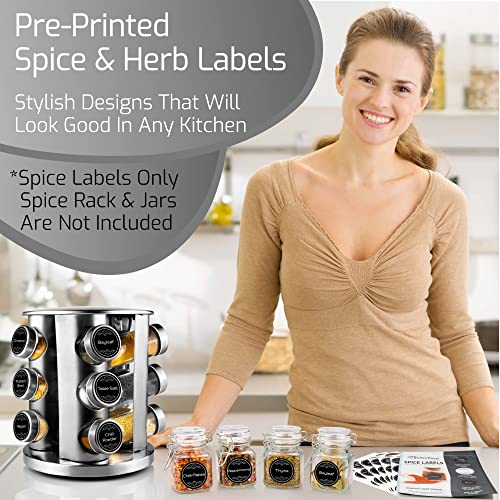 - STYLISH – Organise your herbs and spices in style with these self adhesive small spice jar labels. The simple design gives a clean, clutter free appearance and are perfectly sized to fit on any round or square spice jars.