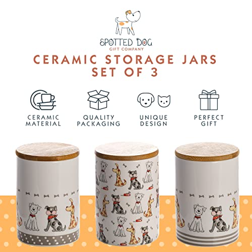 - EFFICIENT KITCHEN STORAGE SOLUTION: Spotted Dog Gift Company's tea coffee and sugar canisters set provides ample space for storing your everyday kitchen essentials. Our ceramic storage jars for kitchen also make a versatile storage for dry ingredients, and more – keeping them fresh and easily accessible