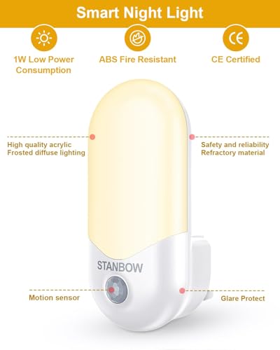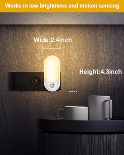- 【Economical and Eco-Friendly】Using high-quality LED lights with a low power consumption of only 1W, the night light plug in wall motion sensor has a lifespan of up to 50,000 hours, making it very economical and Eco-friendly