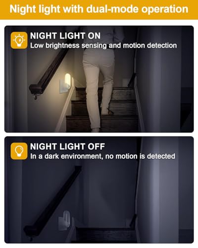 - 【3000K Warm Light】The plug in light emits 3000K warm white light, which is soft and does not flicker. The nightlight can not only protect your eyes, but help you fall asleep at night, help you get rid of your fear of the dark, and create a warm atmosphere for your family