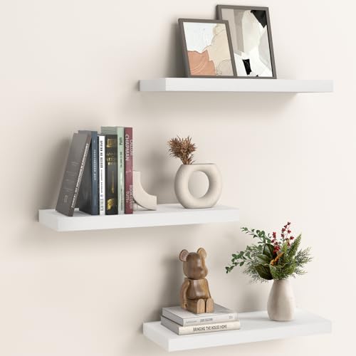 - Sturdy & Durable: Floating shelves are made of MDF wood with dampproof, heat-resistant. The wood boards are non-poisonous and harmless after being carbonized and fumigated. Sturdy enough to hold any small items you want for a long time