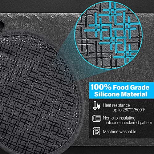 - 260°C/500°F HEAT RESISTANT POT HOLDERS SET: Our heat-resistant potholder mitts are made from a double-sided combination of 100% food-grade silicone and organic cotton material. The double-layer design withstands a heat resistance of 260°C/500°F. It can effectively prevent burns and protect your hands. During important festivals like Christmas, Thanksgiving, Easter, etc., it is the best choice for baking and BBQ lovers