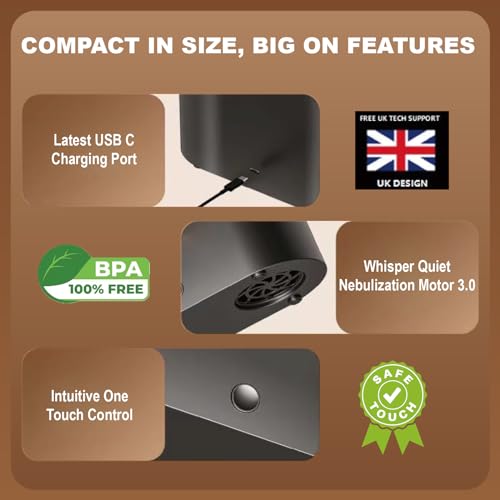 - Whisper quiet ultrasonic atomizer & 7 colourful led night light – Ultra low noise acoustic nebulization motor 3.0 ensure the quietest of operation while the 7 led night light gently helps create the perfect ambience for a relaxing night of sleep.