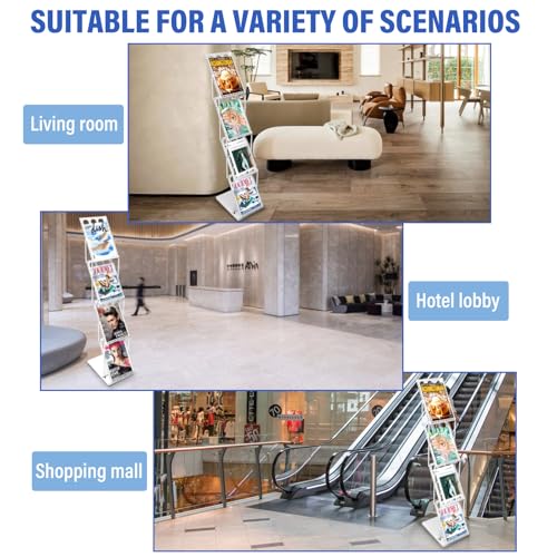 - 【Suitable for a Variety of Scenarios】This versatile brochure stand is suitable for a wide range of settings, including exhibitions, trade shows, reception areas, conventions, vendor events, company booths, recruiting fairs, fashion areas, libraries, hospitals, schools, waiting rooms, tourist information centres, attractions, showrooms, health centres, and retail outlets
