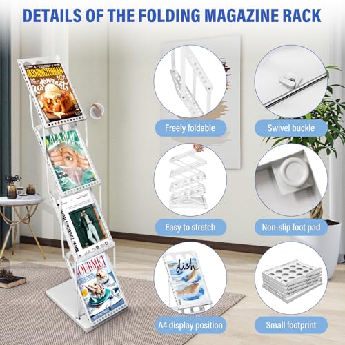 - 【Four-Tier A4 Metal Brochure Stand】Featuring a high-capacity design with 4 pockets, this magazine rack allows you to display multiple printed documents in an organised manner (magazine thickness ≤ 2.6 cm). It makes efficient use of floor space, ensuring more information reaches a wider audience
