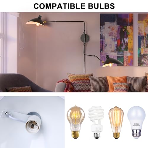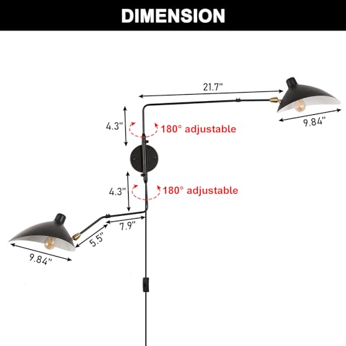 - Function and Decoration: The wire plug that can control the switch makes the control more flexible. It is equipped with black base and plug wires. The design of swing arm and gravity pendant reproduces the classic medieval style and attracts everyone. The traditional country-style metal base is sturdy and durable, protruding the light bulb, while enhancing the warm and soft lighting experience.