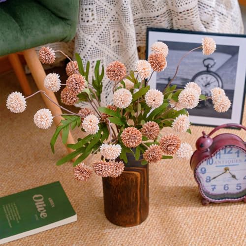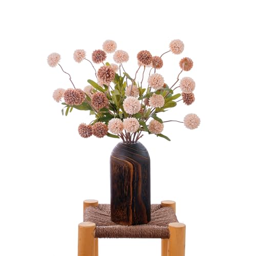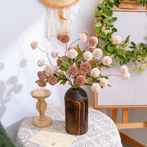 - Decorative Wooden Vase Included: The included vase is made from real wood, adding an organic, textured element that complements farmhouse, rustic, bohemian, or modern interiors. Artificial pompom ball flowers' natural finish enhances the soft neutral colors of the flowers for a perfectly balanced display.