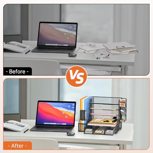 - STRONG AND ROBUST – Our paper organizer for desk is made of solid metal mesh, soldering is very strong, very robust, together with rubber non-slip pads to prevent sliding, avoid surface scratches. It is a robust desk organizers and storage.