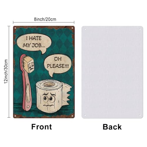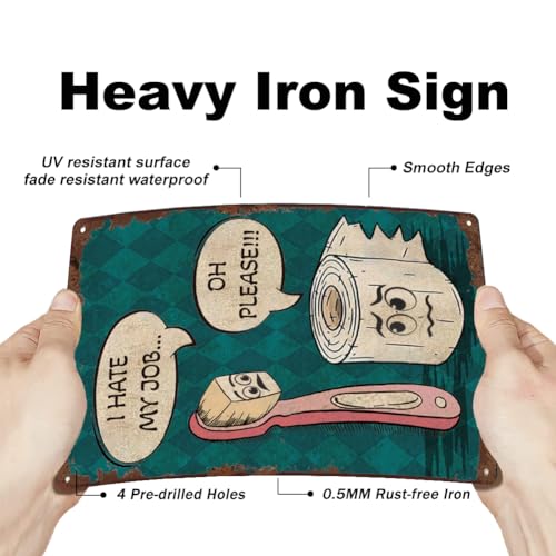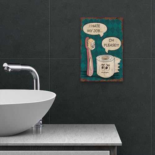 - Bathroom Metal Poster: A fun conversation between toothbrush and toilet paper. Personalized Design with fresh patterns. These retro tin signs are an interesting and attractive decoration for your bathroom.
