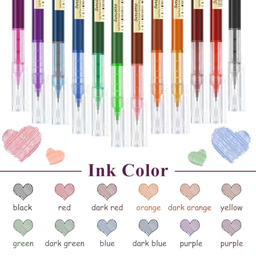 - Vibrant Colors: Surcotto 12pcs 0.5mm Ultra-Fine Gel Pens offer precise lines and are suitable for line exercises, sketches, and technical illustrations. The set includes black, red, dark red, orange, dark orange, yellow, green, dark green, blue, dark blue, pink, and purple. Explore the endless possibilities offered by these 12 vibrant colors and let your creativity shine!
