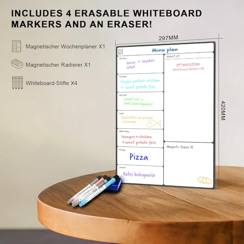 - Spacious A3 Format, Clear at a Glance: The generous A3 size (297mm × 420mm) provides ample space for writing lists, tasks, and reminders. Ideal for keeping everything in view—especially when used as a weekly planner whiteboard in busy households.