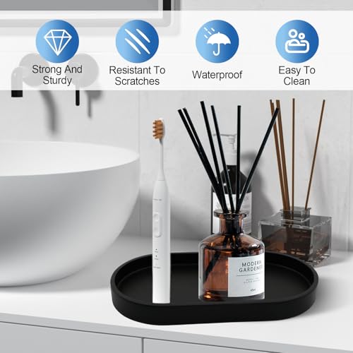 - 【Multi-Scene Application】According to your personal needs, you can place the black decorative tray in the toilet tank, washbasin, bathroom, dressing table top, linen wardrobe, bedside table, kitchen and other places you want. Matt black bathroom tray also suits small potted plant and other decorative items to keep things organized. This matt black bathroom tray can serve you perfectly in the bathroom, kitchen, bathtub, as long as you want it, it can meet your small storage and decoration needs