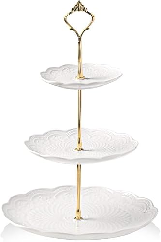 - Easy to Store and Clean: These sturdy ceramic plates and metal stand convert from a 3-tier tray with handle masterpiece to a stackable and easily cleanable serving kit ready for any cupboard or cabinet.