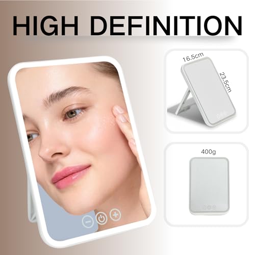 - 【85° Rotation】Our desk light up mirror is equipped with a fixed bracket to provide support, so that you don’t have to hold the mirror all the time when using it, ensuring that it is more convenient for you when applying makeup. Additionally, the 85-degree rotation feature allows you to position the mirror at any angle, which is convenient for you to use from different positions.
