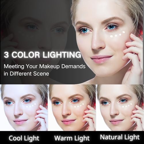 - 【Touch-screen】Smart Dimming: Warm light, Cool light, Natural light. Use our smart dimming function to provide the perfect light for your makeup. Each light has three brightness options, from dim to bright, with just one button. Our LED mirror are set to eye protection mode to protect your eyes even if the light increases.