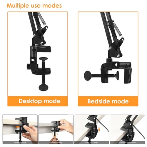 - 💡360° Rotation Lighting: With a 360-degree rotatable lamp head and flexible gooseneck, this lamp can illuminate your workspace from any angle. The light can be directed downwards, making it ideal for reading, sewing, knitting, and other crafts.