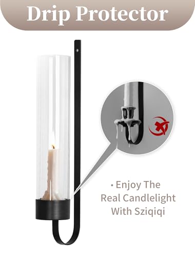 - About Size: Standing at a height of 39cm with a 30cm-high glass cylinder, our black metal wall candle holders are designed to accommodate most standard tapered candles with a diameter of 2.2cm