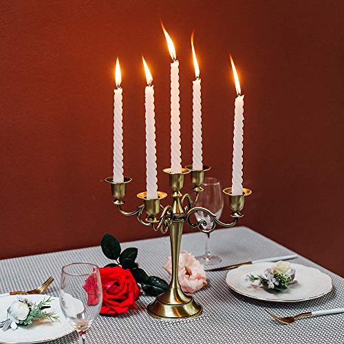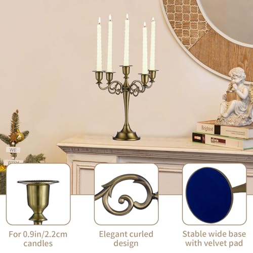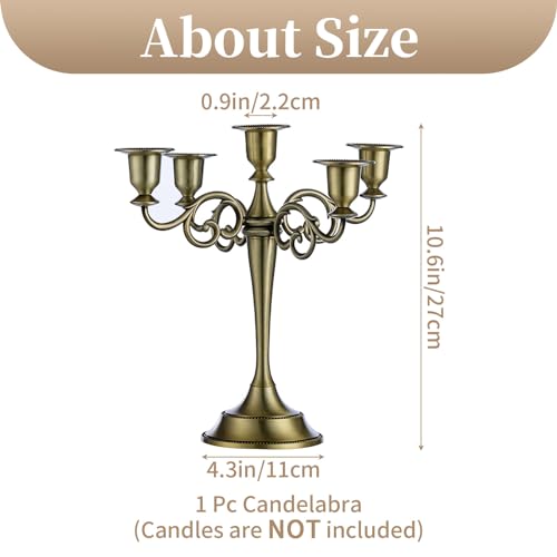 - PACKAGE INCLUDES: 1 Pieces 5-arm candle holder. Candles are not included. They are bronze color with a brushed metal design, vintage & modern feel.