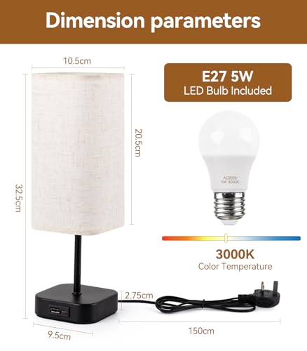 - 【Included Warm White Dimmable LED Bulb】 Enjoy a complimentary E27 5W 3000K dimmable LED bulb. It emits a comfortable, eye-friendly warm white light, designed for clarity and creating a relaxing atmosphere, ideal for bedside use.