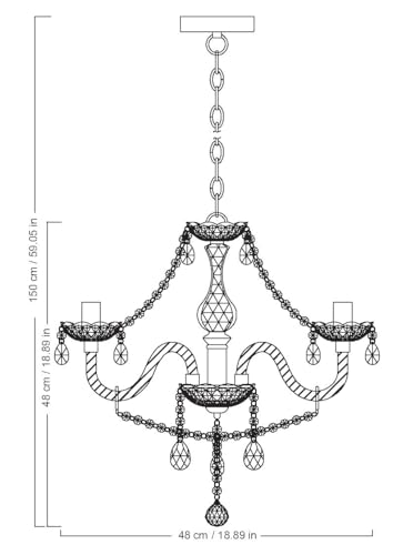- Max Bulb Wattage: 40 Watt, Voltage: 240V, Height: 48cm Width: 48cm