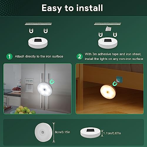 - Easy to Install:There are magnetic sheet in sensor lights indoor, making installation quick and easy. No tools are required, LED night lights can be directly adsorbed onto iron metal surfaces. Strong adhesive tape, strong magnetic sheet, not easy to fall off.