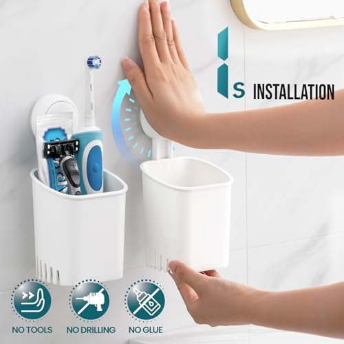 - Durability & Strong Suction: The scution cup toothbrush holder is made of premium thickened ABS material. Our high-quality suction cup based on the bionics octopus sucker principle is made of anti-aging TPE material, which hold up to 3 KG. The wall mounted toothbrush holder is waterproof so it can be used in wet areas such as bathroom and kitchen