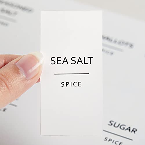 - Spice Labels Stickers Preprinted, No Messy Handwriting: Our spice labels are printed in all caps large black font with high contrast for easy reading. These are solid decals, no rubbing required. Labels are preprinted on white vinyl that won't peel off or tear, on premium material that can be removed and replaced if needed.
