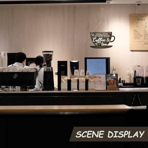 - 【Rustic Tea & Coffee Wooden Sign】 – 19x29cm hanging plaque featuring the charming phrase “Good Moon Starts with Coffee & Tea”, adding warmth and personality to your kitchen wall art and coffee corner.