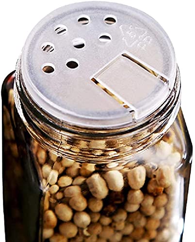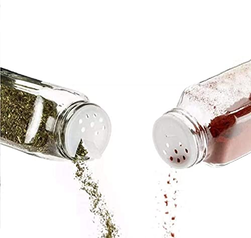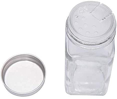 - Package includes 30 x clear glass jars, 30 x silver metal lids, 30 x shaker lids, 1 x funnel,180 x round white Labels, 180 x Elegant Black Labels with spice names.