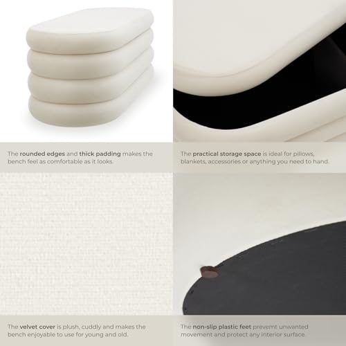 - ELEGANT & COSY DESIGN: Transform your space with this practical storage bench, featuring a soft, velvet-look cover that adds a homely and modern touch to any room. With its elegant and versatile style, the ottoman bench fits effortlessly into various interior styles, whether you're looking for a hallway or bedroom storage solution. A functional and aesthetic addition for your home, this soft storage footstool offers a pleasant and cosy feel, creating a warm and inviting atmosphere.