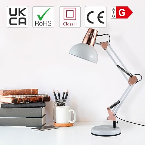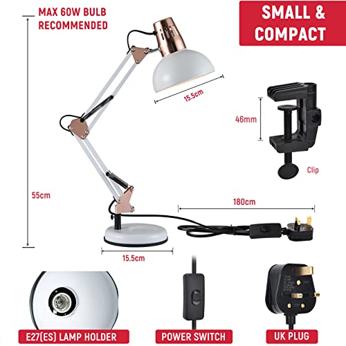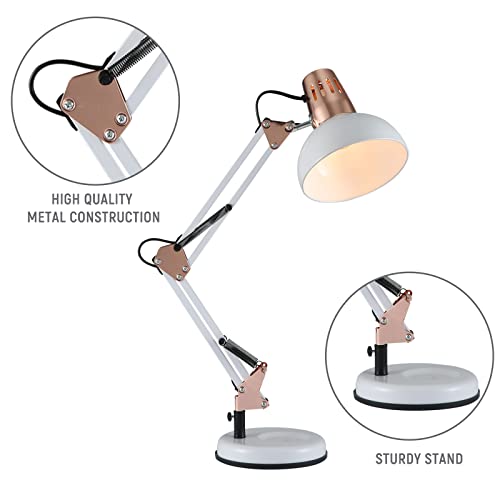 - TEKLED LED Desk Lamp Adjustable Swing Arm Replaceable E27 Edison Screw Bulb Holder Flexible Table Clamp for Bedside Reading Office Work Students Swing Arm Gold White